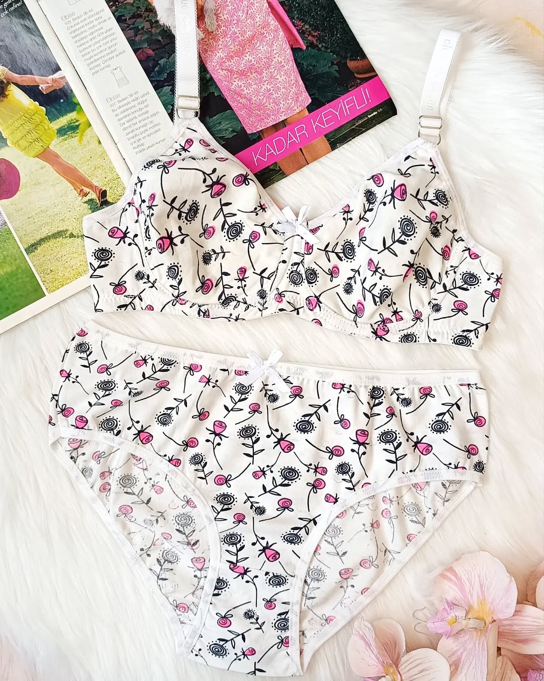 ست تمام نخ پنبه برند SARMIN فنردار دولایه دوزی شده جم کنندگی و لیفت کننده سینه تنخور بسیار زیبایی داره تمام نخ و ضد حساسیت