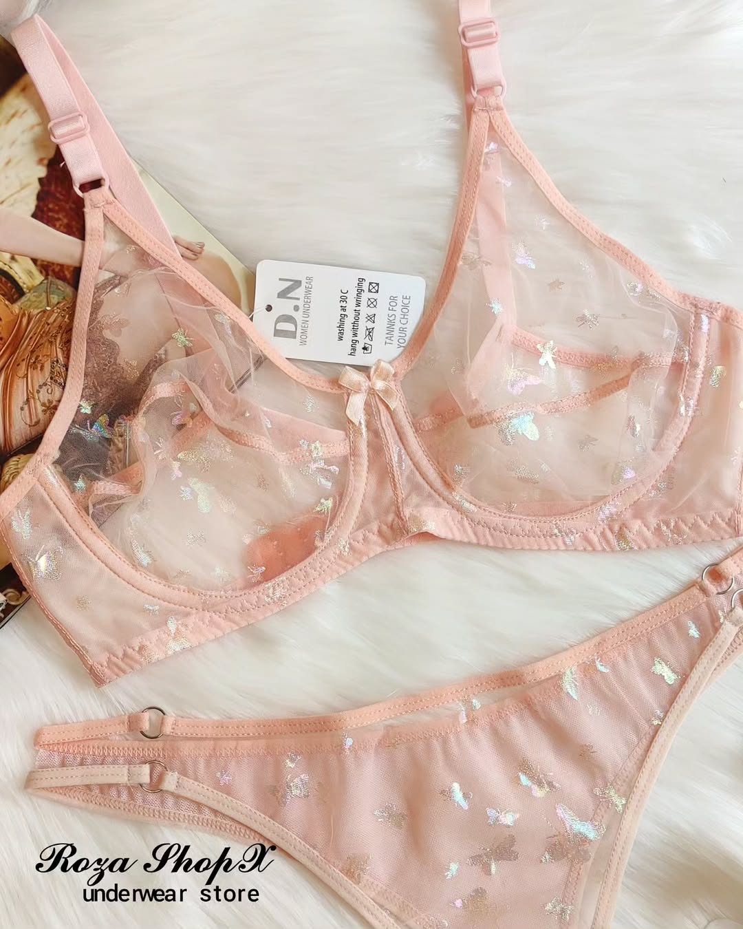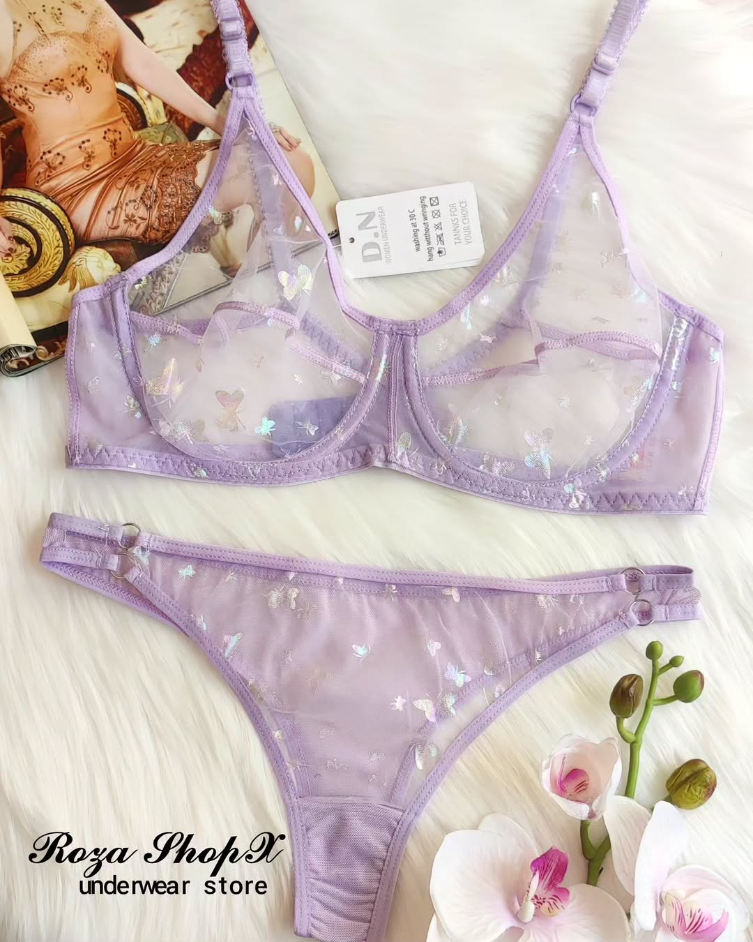 ست تور شیشه ای برند D.N فنردار بند سرشانه قابل تنظیم هست جم کننده و بالا برنده سینه کیفیت خیلی خوبی داره تنخور بسیار زیباا